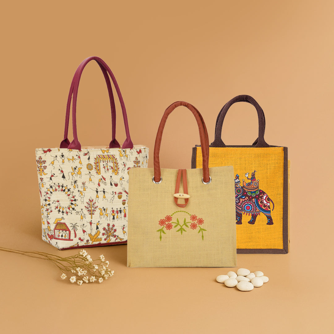 Warli Print Hook and Loop Fastener Jute Shopping Bag