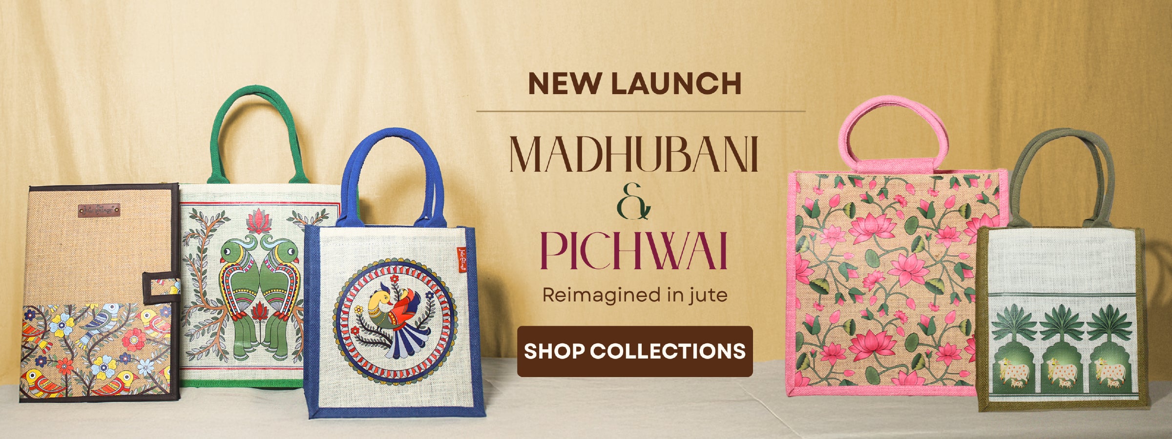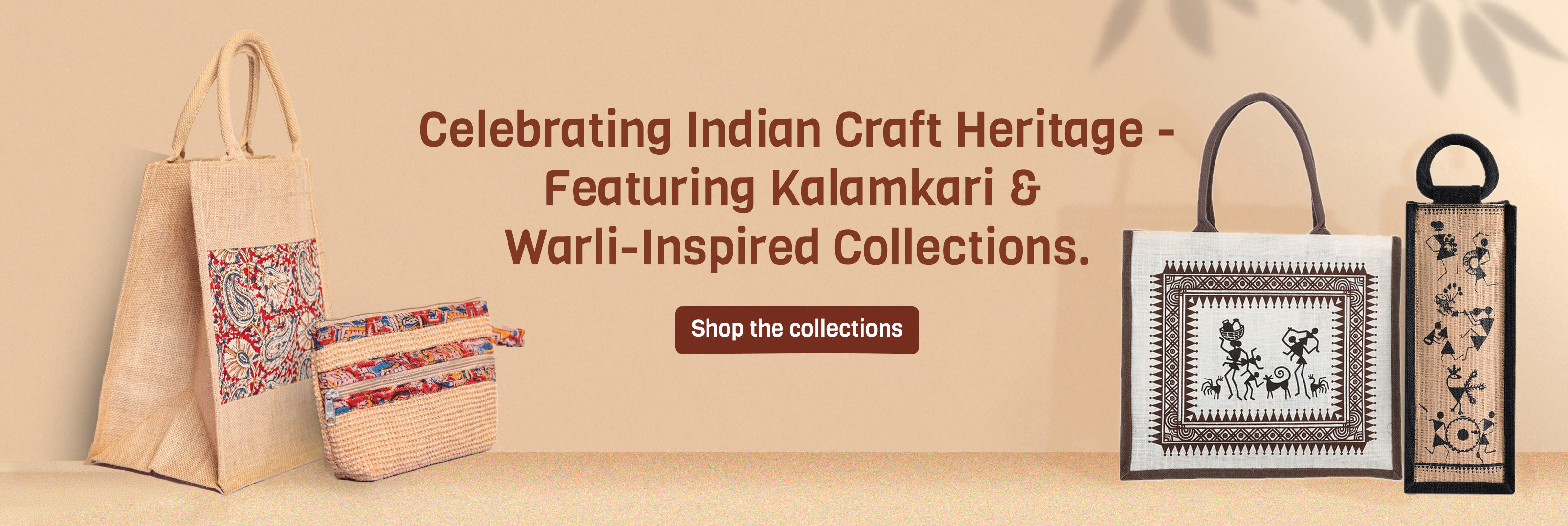 Dobby Kalamkari Jute Pouch - 2 Zip