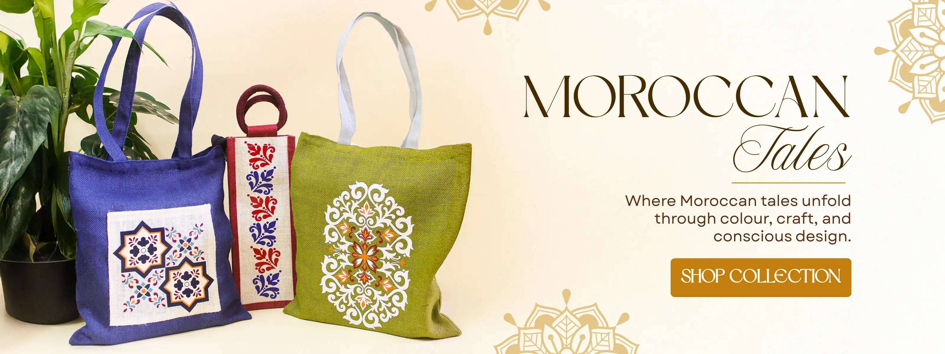 Warli Print Hook and Loop Fastener Jute Shopping Bag