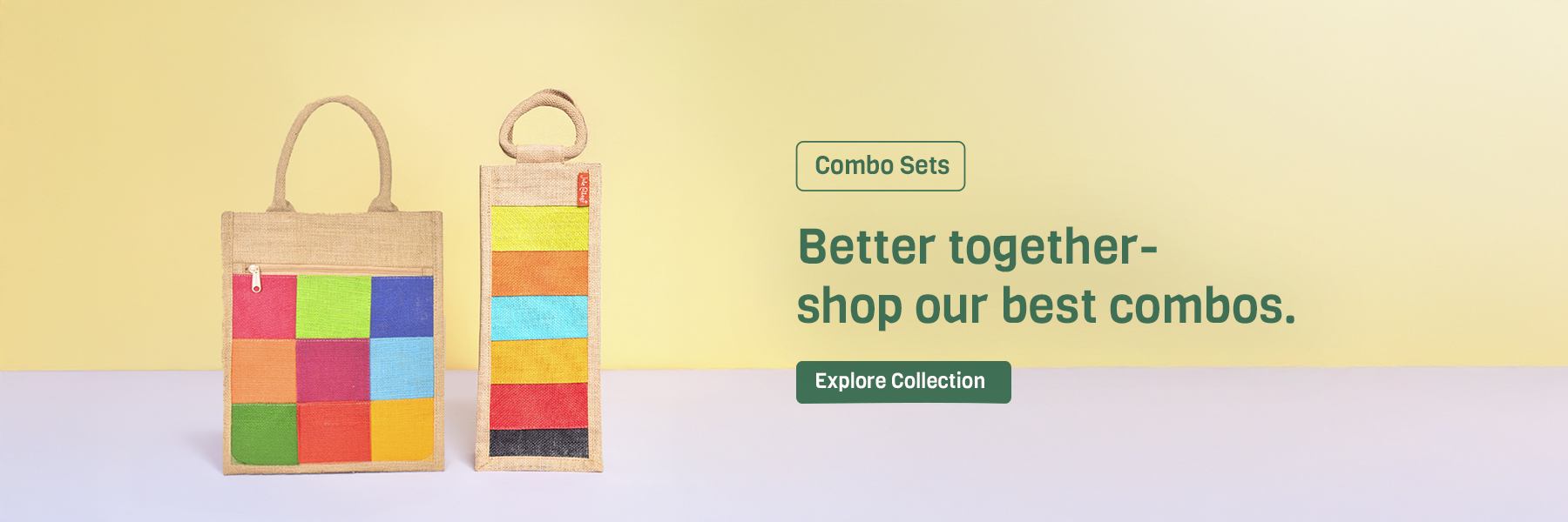Combo of Jute Yellow and Olive Green Tape Handle Lunch Bags