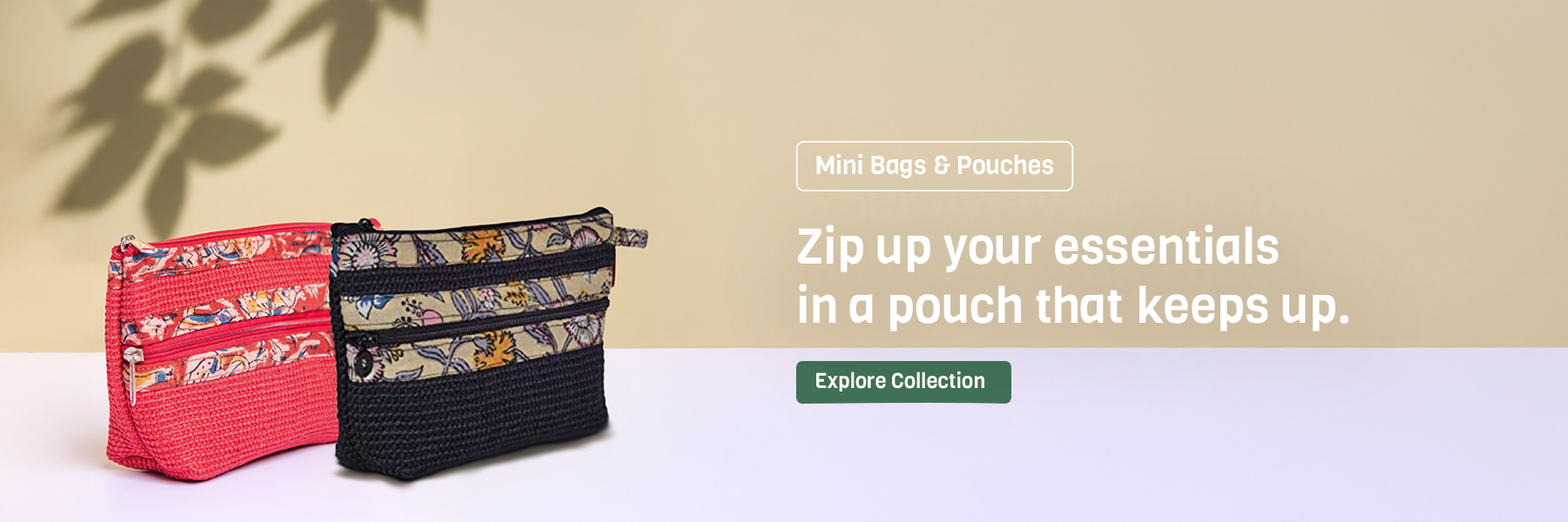 Dobby Kalamkari Jute Pouch - 2 Zip
