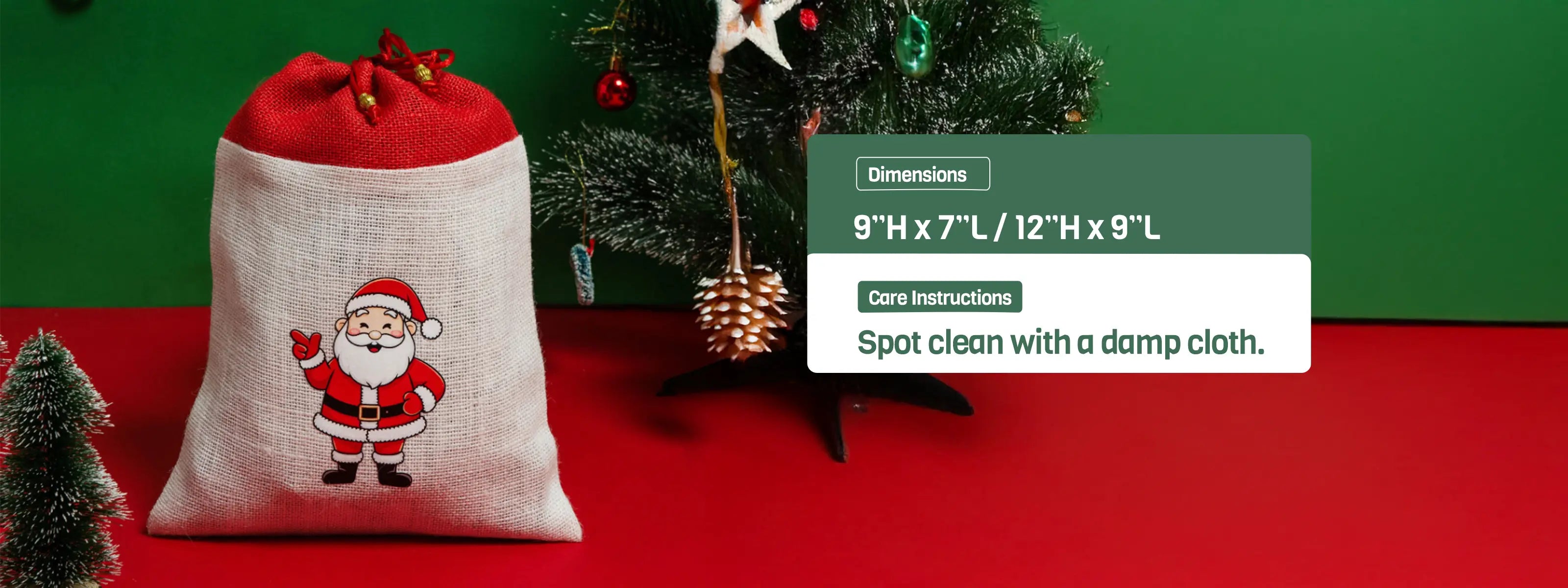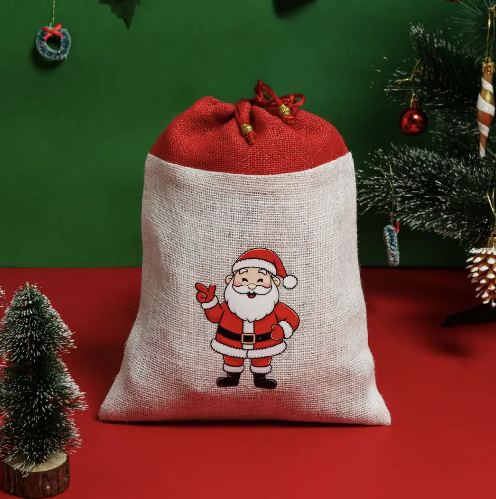 Eco-friendly, stylish, and festive, this jute pouch is your go-to for gifting, carrying essentials, and celebrating Christmas responsibly. Comes in 2 different sizes- 12"H x 9"W and 9"H x 7"W.