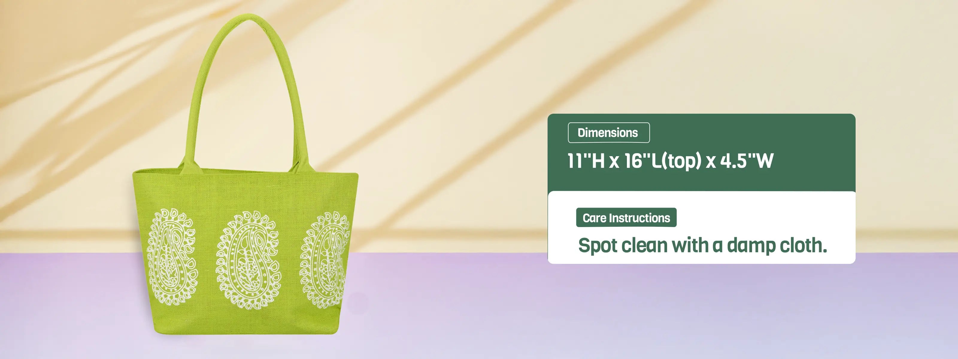 Eco-friendly, stylish, and proudly Made in India—Jute Cottage bags replace over 1000 plastic bags and support a greener planet. Our bags are Jute Mark Certified 100% Genuine Jute, 100% biodegradable and compostable and are durable, lightweight, and versatile.