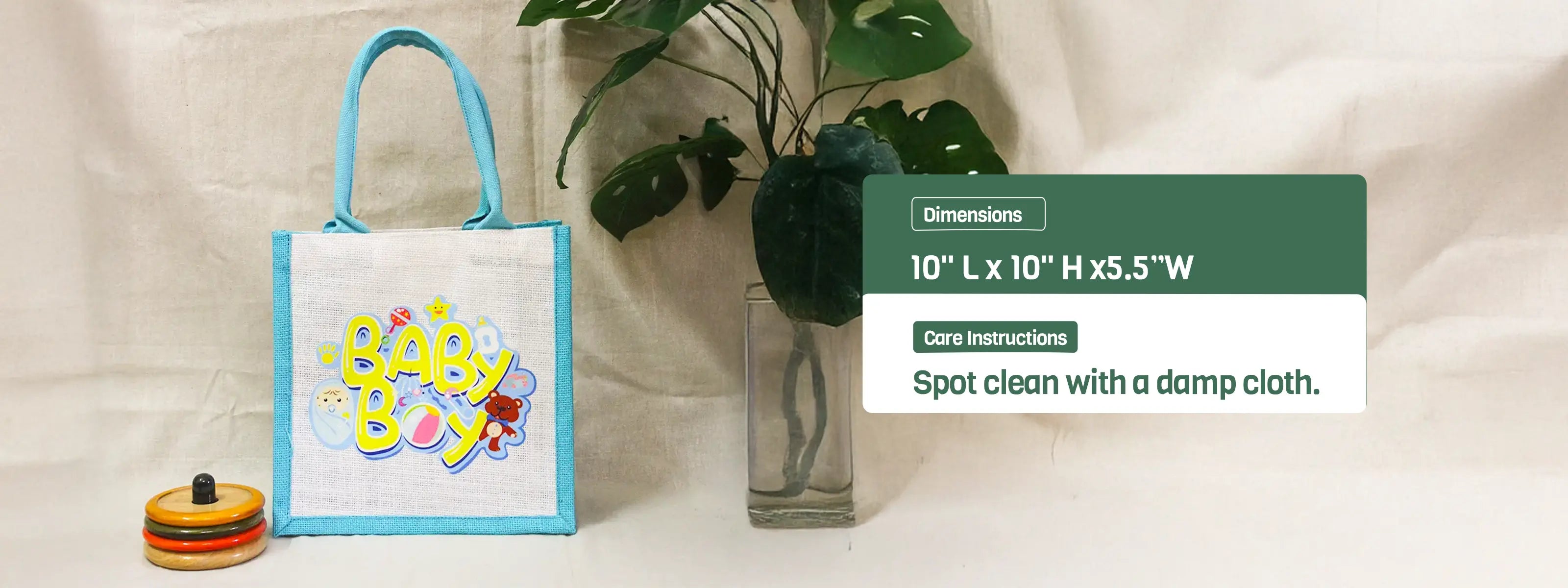 Celebrate your little one’s arrival with our adorable Baby Boy jute bags(10"Hx10"Lx5.5"W),perfect for gifting and party favours.