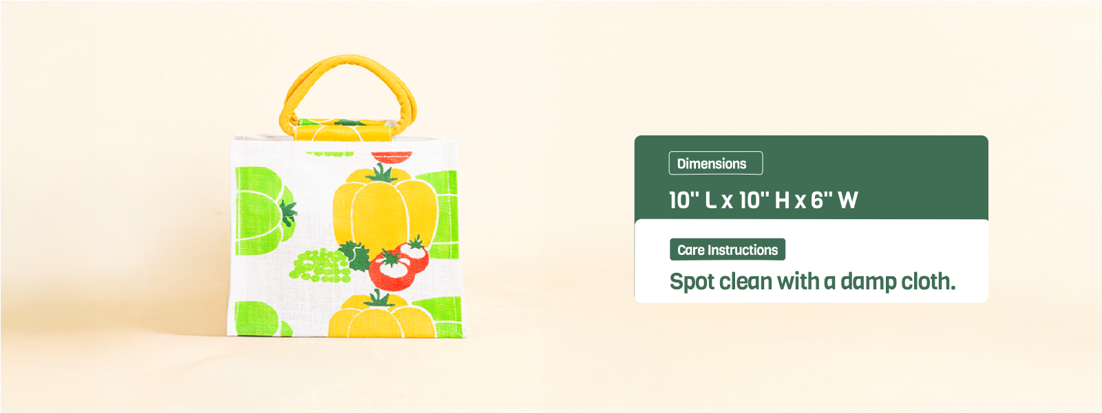 A fun and functional jute lunch bag adorned with a playful capsicum print. Lightweight, eco-friendly, and perfect for carrying your meals in style.