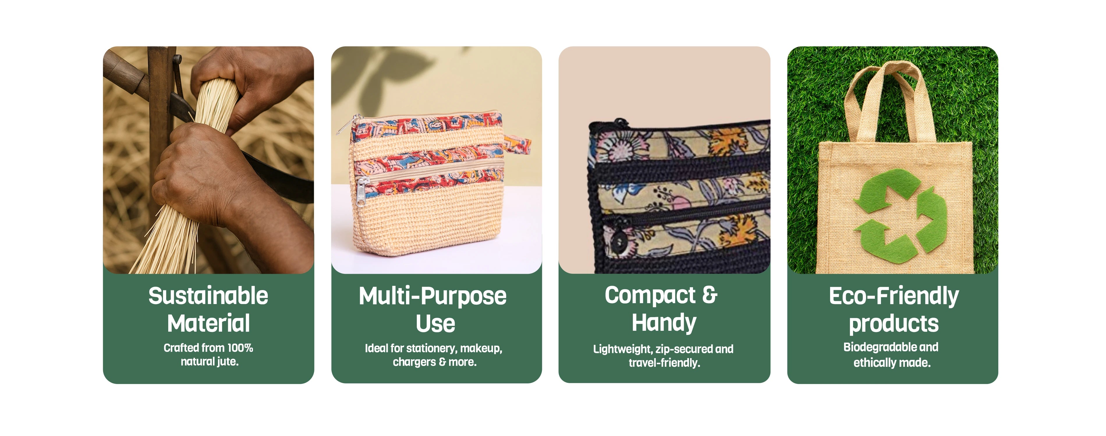 Eco-friendly, stylish, and proudly Made in India—Jute Cottage bags replace over 1000 plastic bags and support a greener planet. Our bags are Jute Mark Certified 100% Genuine Jute, 100% biodegradable and compostable and are durable, lightweight, and versatile.