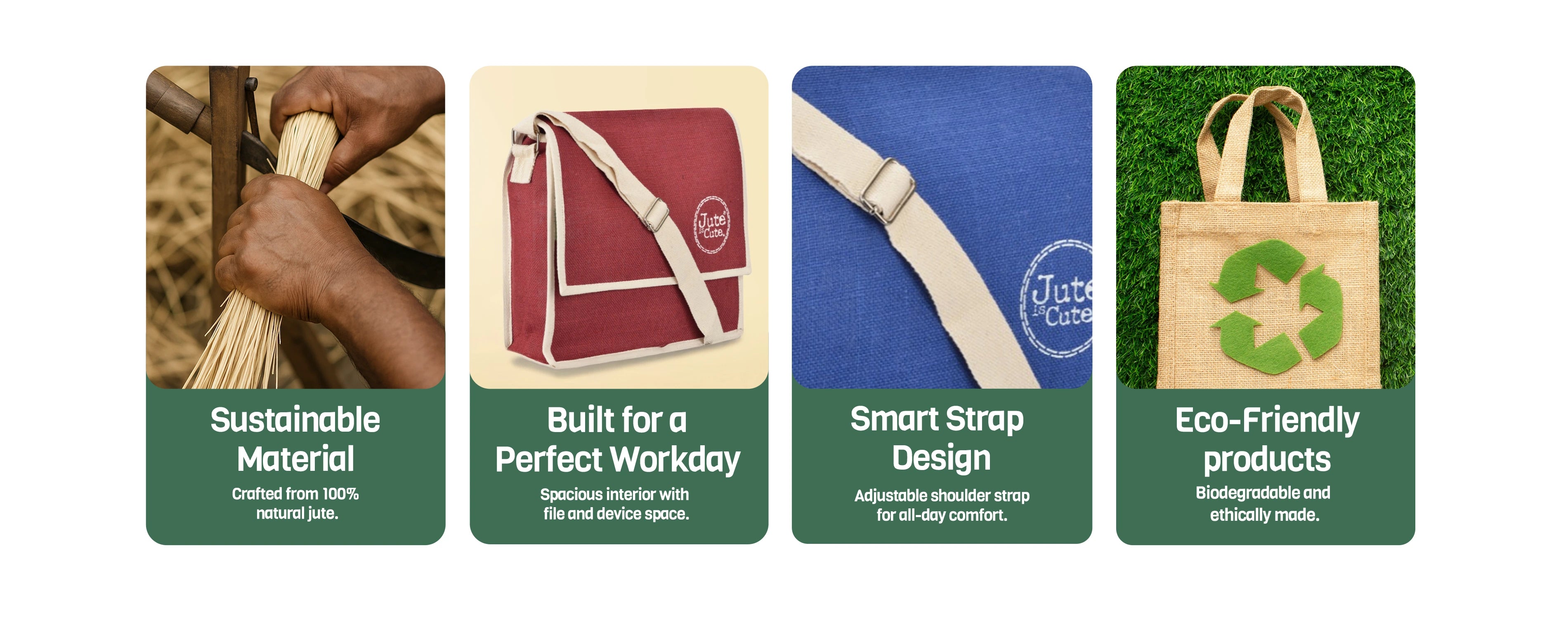 Eco-friendly, stylish, and proudly Made in India—Jute Cottage bags replace over 1000 plastic bags and support a greener planet. Our bags are Jute Mark Certified 100% Genuine Jute, 100% biodegradable and compostable and are durable, lightweight, and versatile.