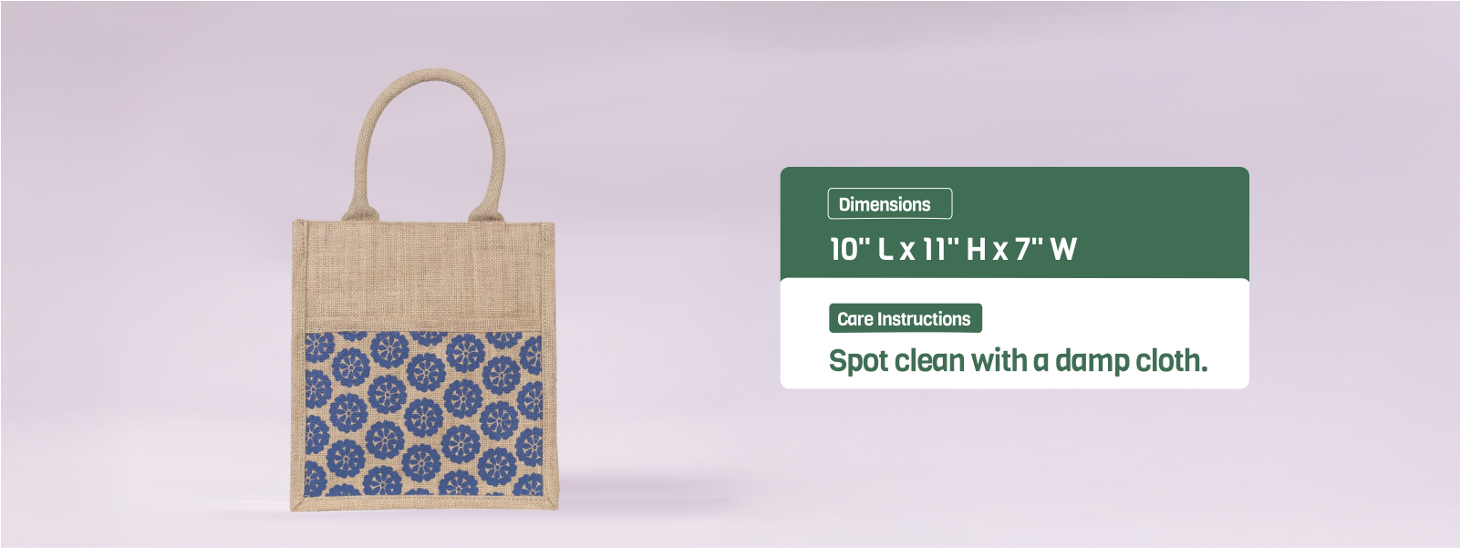 Eco-friendly, stylish, and proudly Made in India—Jute Cottage bags replace over 1000 plastic bags and support a greener planet. Our bags are Jute Mark Certified 100% Genuine Jute, 100% biodegradable and compostable and are durable, lightweight, and versatile.