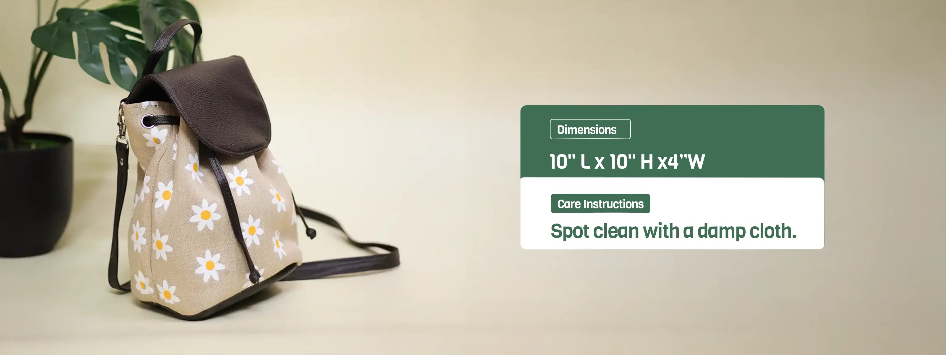 A cute and compact floral backpack(10"H x 10"L x 4"W) designed for quick and easy carrying in the most stylish way.
