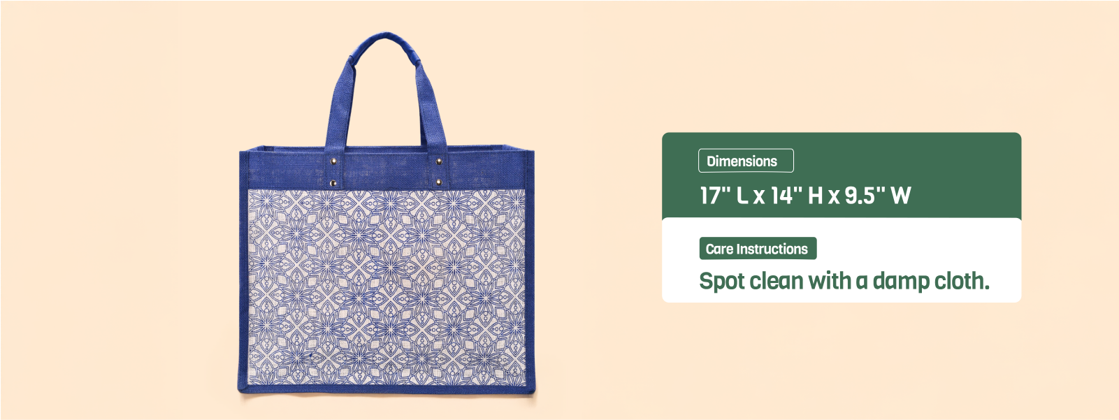 Eco-friendly, stylish, and proudly Made in India—Jute Cottage bags replace over 1000 plastic bags and support a greener planet. Our bags are Jute Mark Certified 100% Genuine Jute, 100% biodegradable and compostable and are durable, lightweight, and versatile.