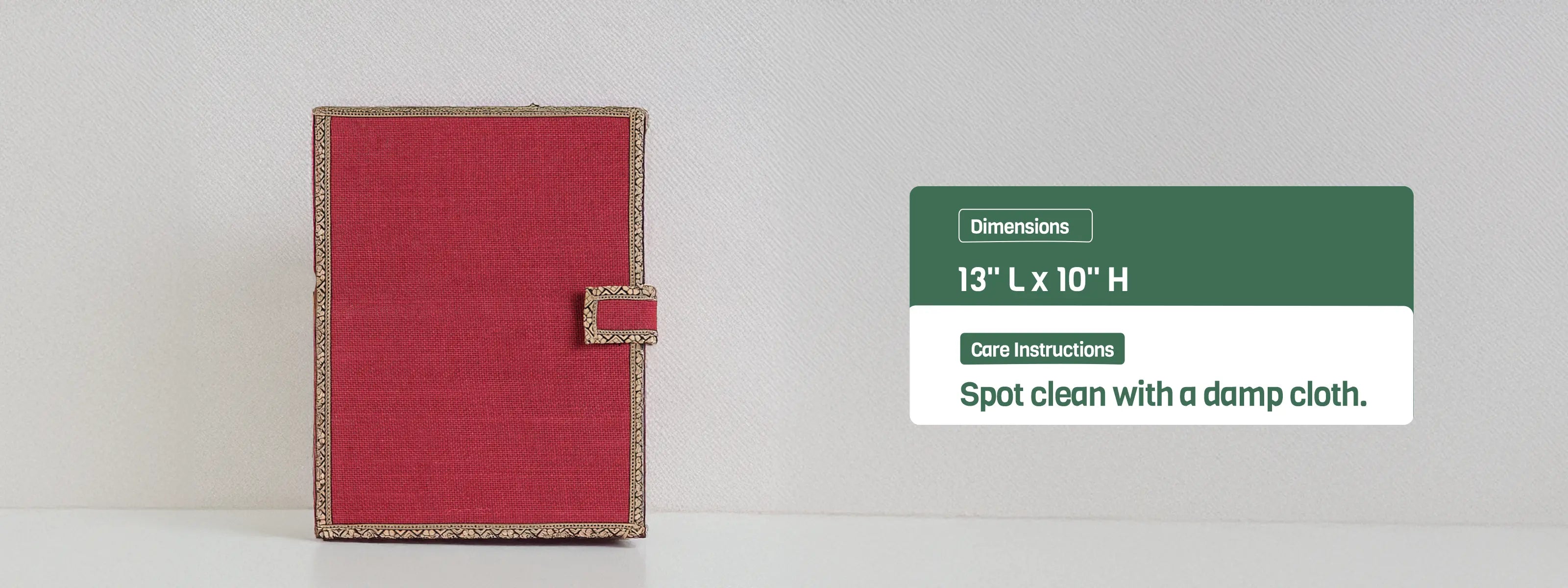 Crafted in jute, this 10”L x 13”H folder comes finished with an elegant hook & Loop fastener closure.