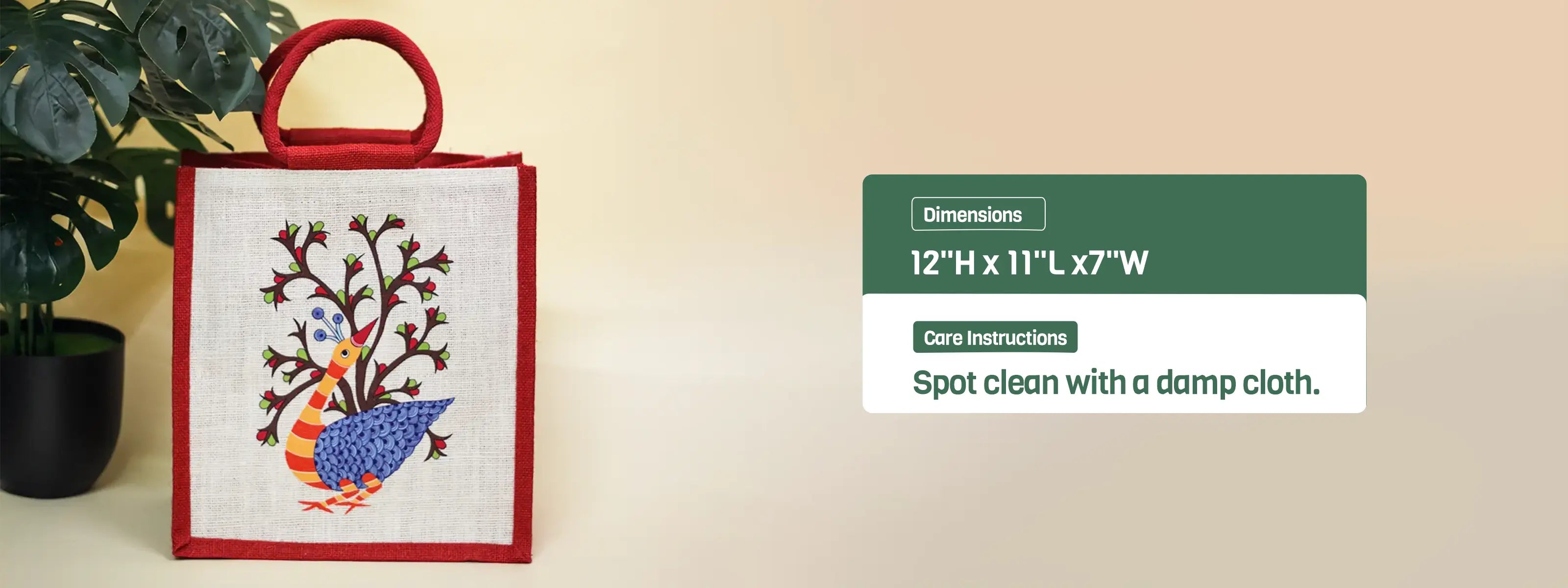 Eco-friendly, stylish, and proudly Made in India—Jute Cottage bags replace over 1000 plastic bags and support a greener planet. Our bags are Jute Mark Certified 100% Genuine Jute, 100% biodegradable and compostable and are durable, lightweight, and versatile.