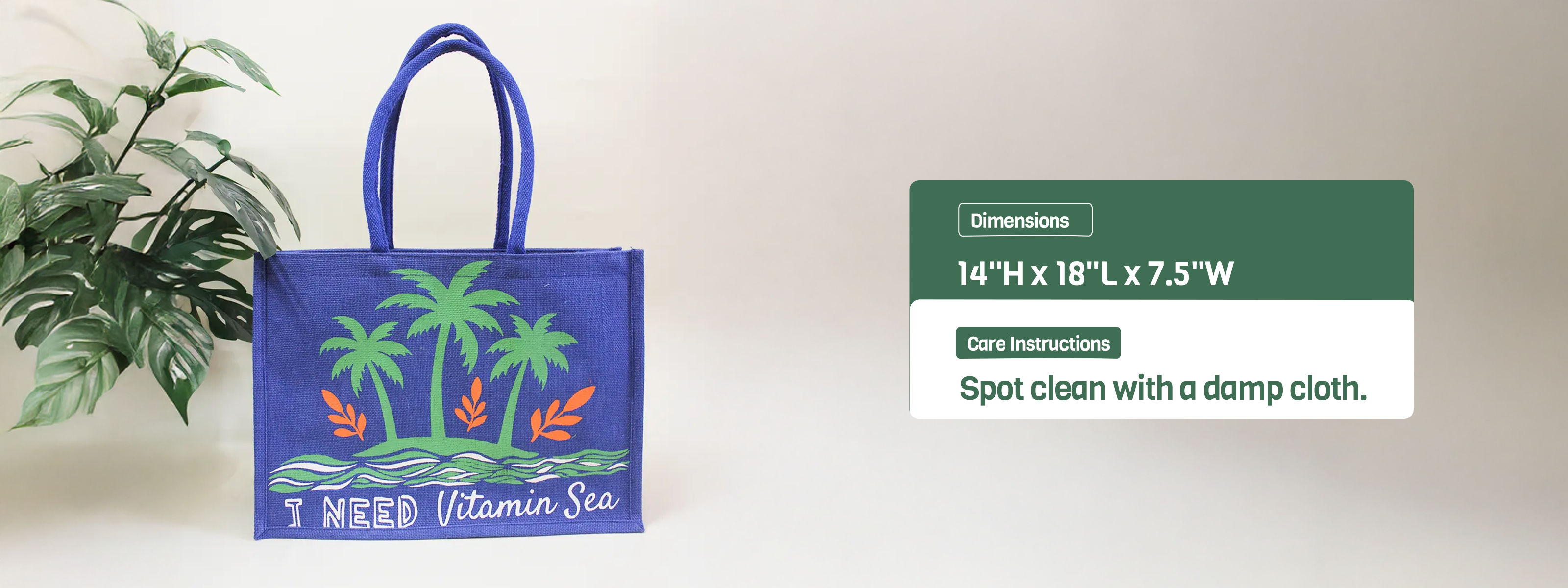 This new I need Vitamin Sea shopping bag(14"H x 18"L x 7.5"W) is big, spacious and perfect for a beach getaway, with a zipper closure to keep your essentials safe and secure.