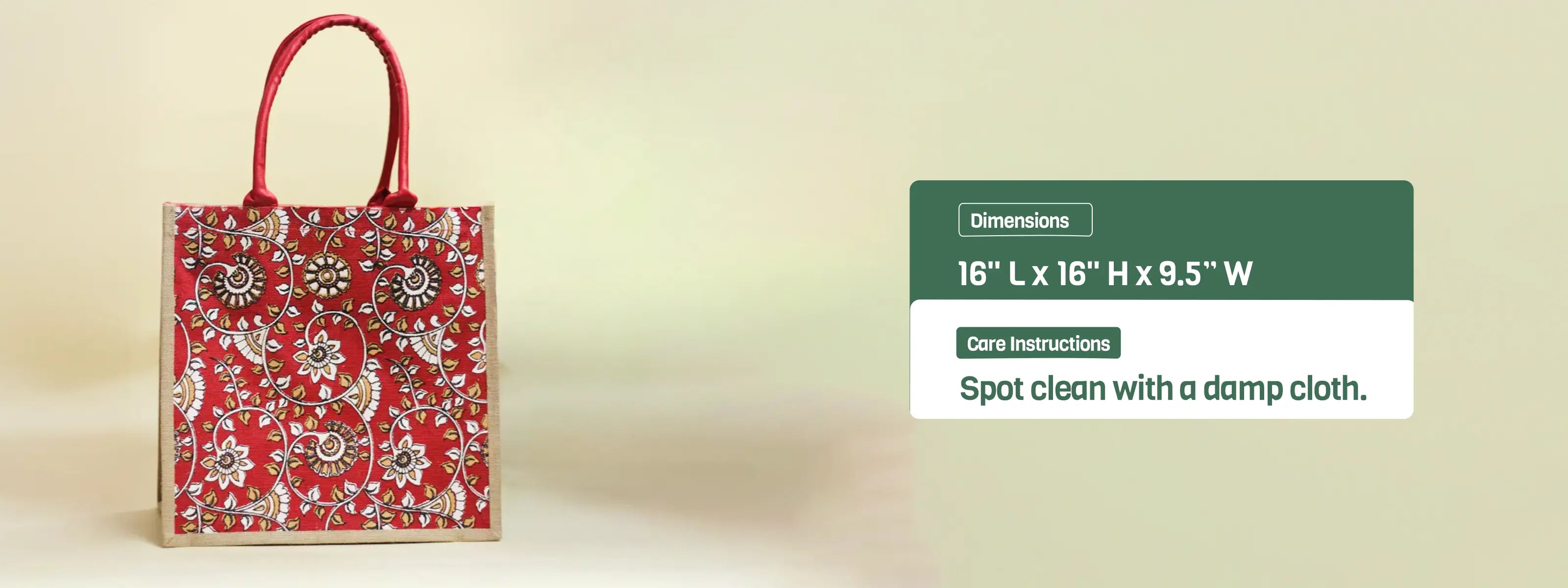 Eco-friendly, stylish, and proudly Made in India—Jute Cottage bags replace over 1000 plastic bags and support a greener planet. Our bags are Jute Mark Certified 100% Genuine Jute, 100% biodegradable and compostable and are durable, lightweight, and versatile.