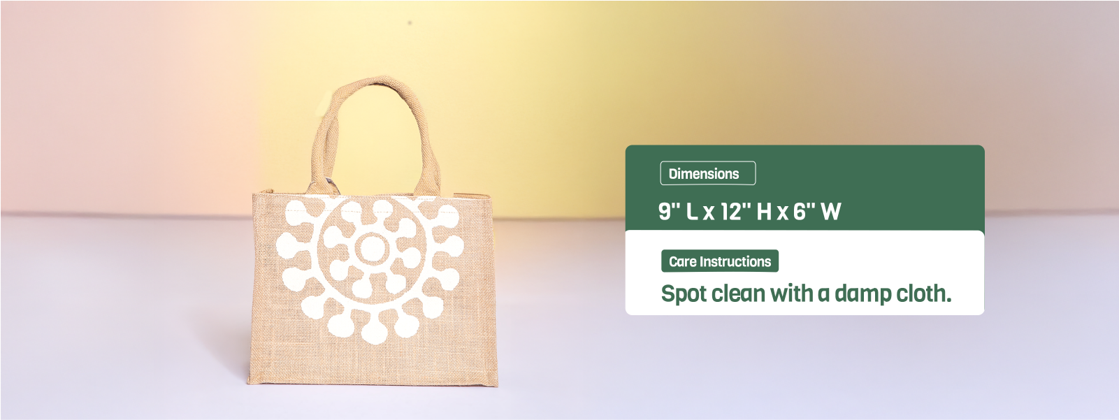 Eco-friendly, stylish, and proudly Made in India—Jute Cottage bags replace over 1000 plastic bags and support a greener planet. Our bags are Jute Mark Certified 100% Genuine Jute, 100% biodegradable and compostable and are durable, lightweight, and versatile.