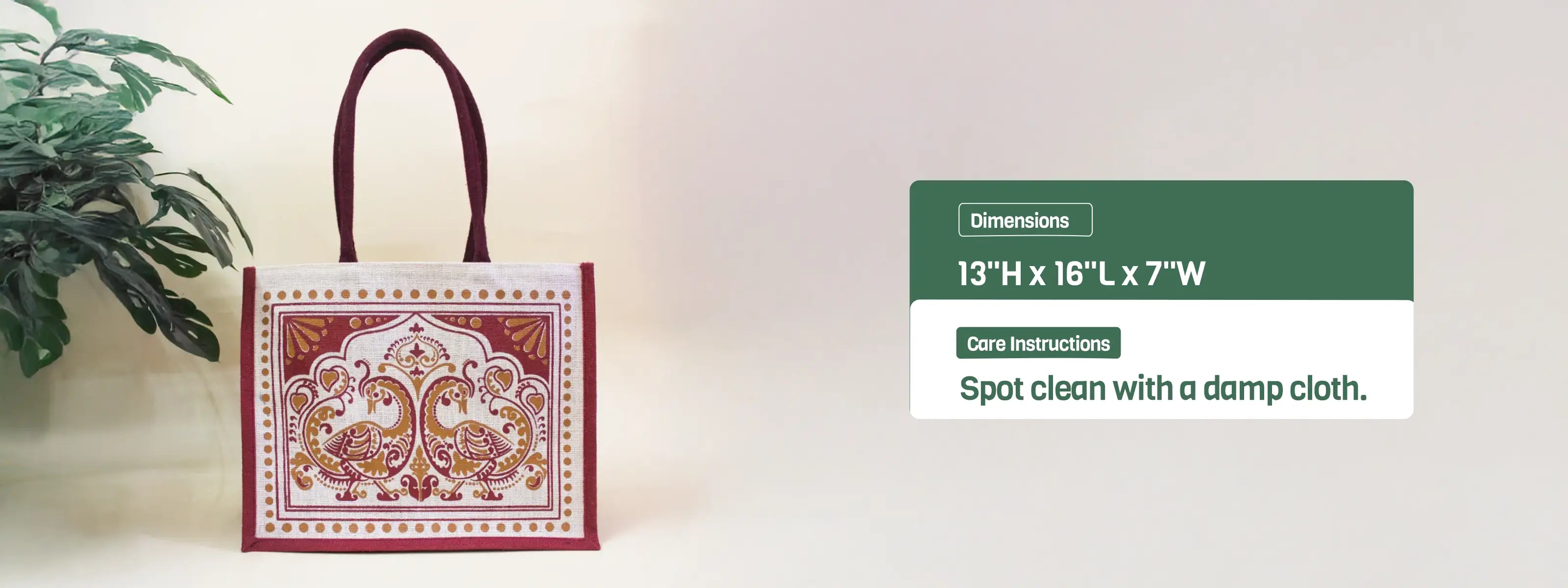 Eco-friendly, stylish, and proudly Made in India—Jute Cottage bags replace over 1000 plastic bags and support a greener planet. Our bags are Jute Mark Certified 100% Genuine Jute, 100% biodegradable and compostable and are durable, lightweight, and versatile.