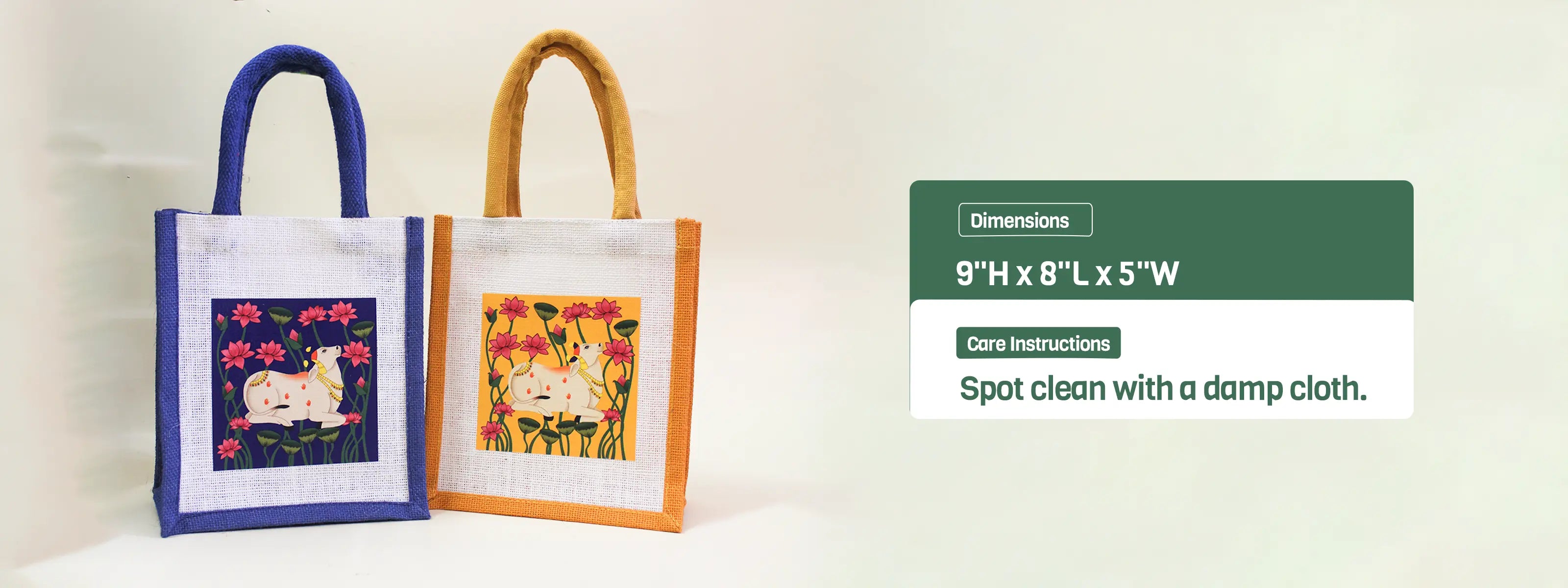 Gifting made easy with our Pichwai jute bags(9"Hx8"Lx5"W),perfect for gifting and party favours.( 2 of each colour)