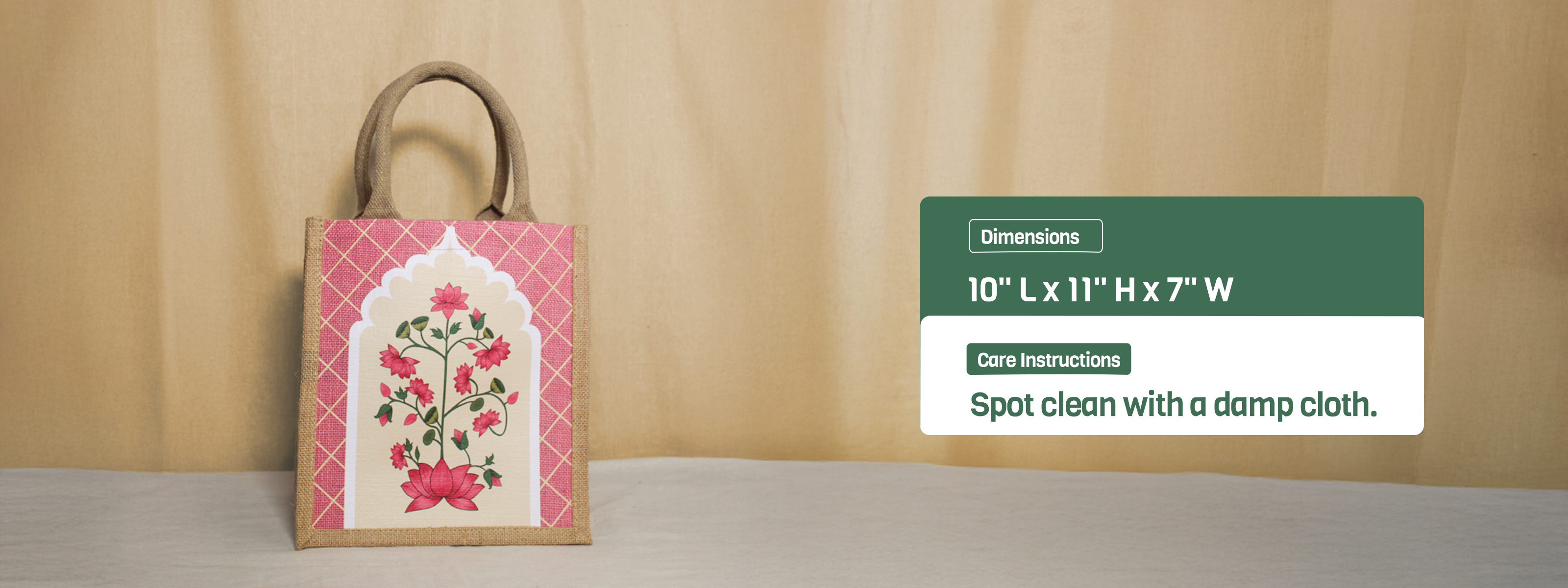 Eco-friendly, stylish, and proudly Made in India—Jute Cottage bags replace over 1000 plastic bags and support a greener planet. Our bags are Jute Mark Certified 100% Genuine Jute, 100% biodegradable and compostable and are durable, lightweight, and versatile.