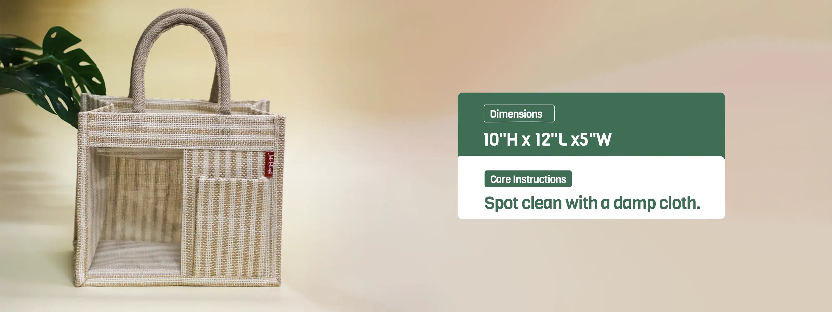 Eco-friendly, stylish, and proudly Made in India—Jute Cottage bags replace over 1000 plastic bags and support a greener planet. Our bags are Jute Mark Certified 100% Genuine Jute, 100% biodegradable and compostable and are durable, lightweight, and versatile.