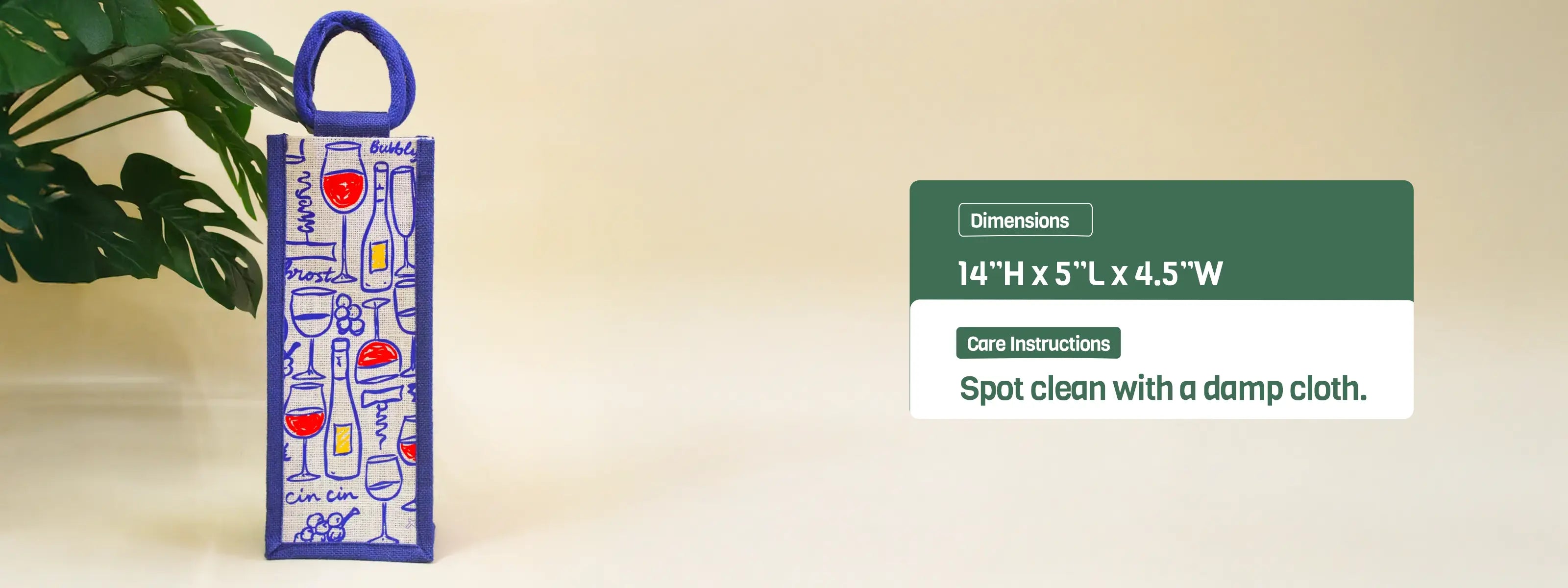 Our Wine glasses bottle bag(14"H x 5"L x 4.5"W) inspired by a sketchy wine glasses pattern is perfect for carrying your bottle and gifting.